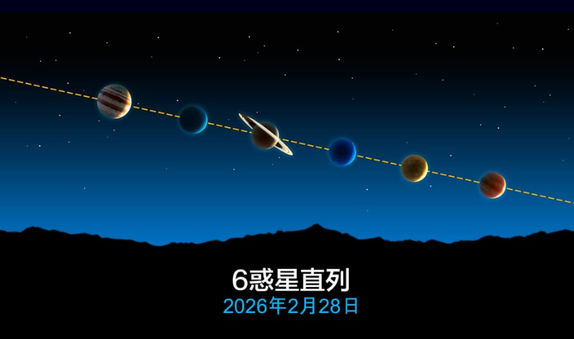 空に6つの惑星が並びます。