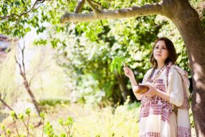 - 1975年 京都市中京区生まれ。親戚の神社で巫女として経験