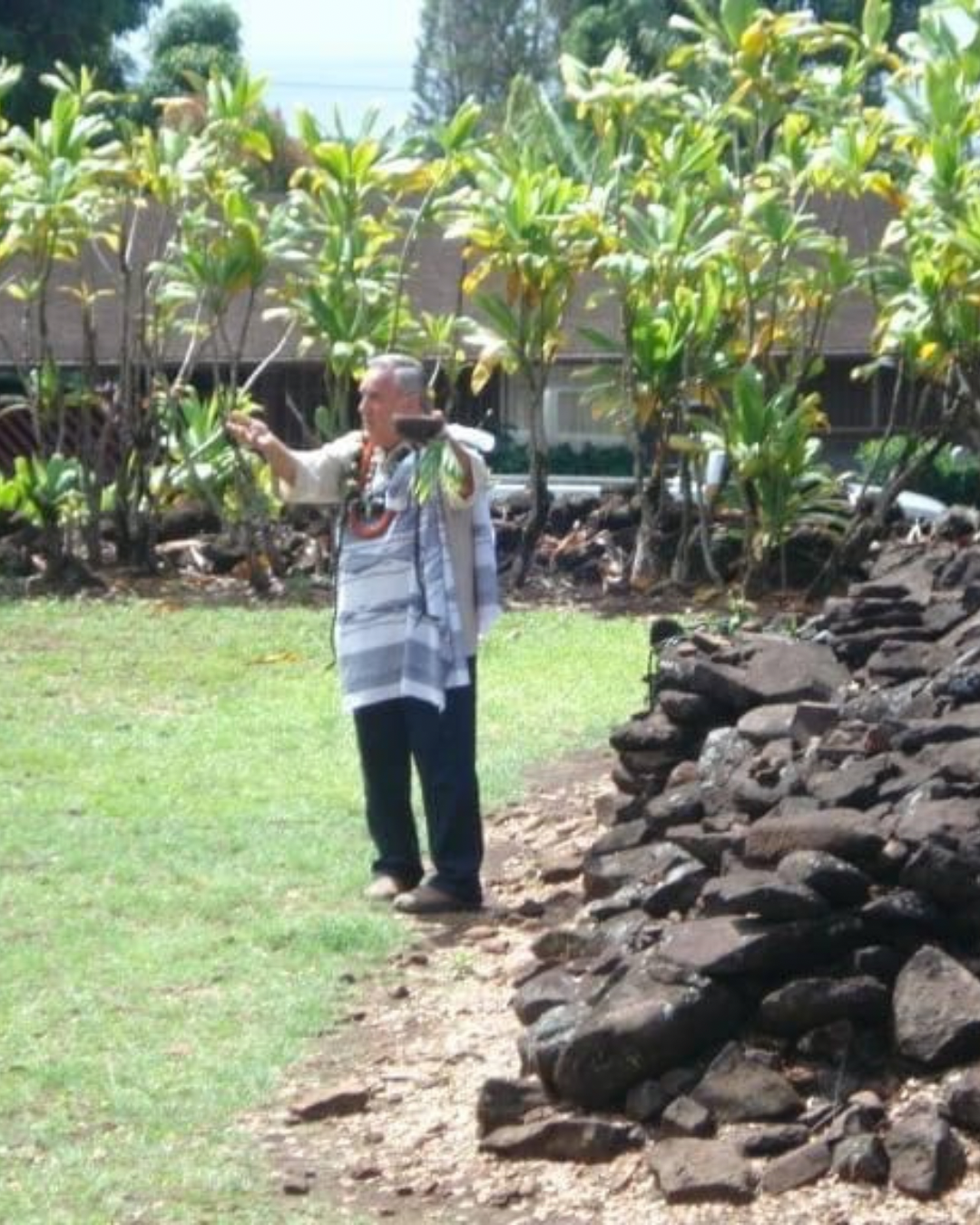 ハワイ州の"生きた財宝"と呼ばれる神官、Kahu Wandell Kalanikapuaenui Silva 氏に長年師事し、古来ハワイの祈り・儀式・文化・精神を継承。日本へ正しく伝える役割を担うようになる。
